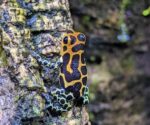 The aradero morph is a lowland form that lives nearby another but does not resemble it. Last, the banded morph, a mimic of Ranitomeya summersi, lives in much drier climates than the average R. imitator and is most often found in Dieffenbachia and Heliconia plants.